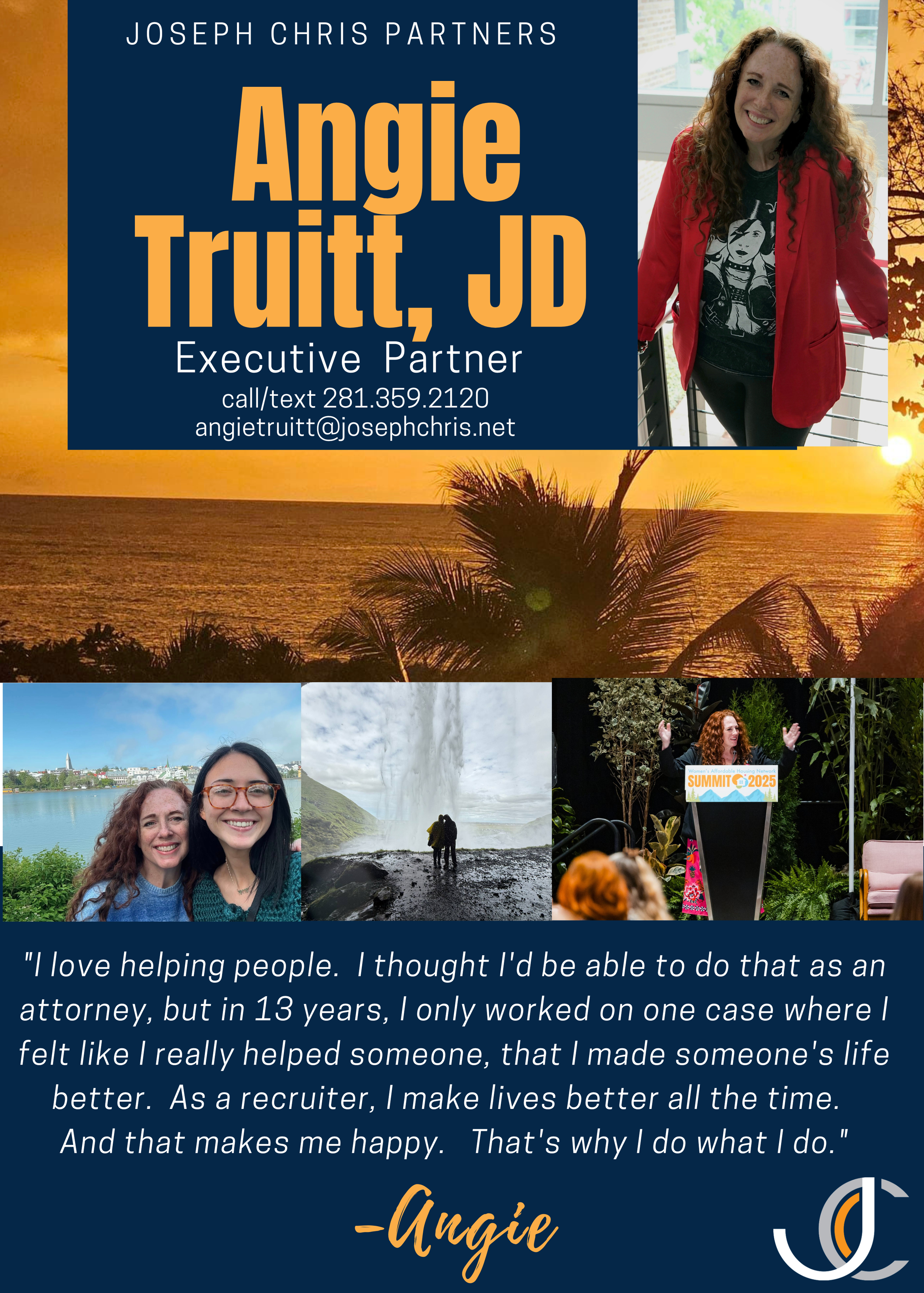 Angie Truitt is an affordable housing recruiter who brings both expertise and heart to her work in affordable housing executive search. At Joseph Chris Partners, an award-winning executive search firm specializing in real estate development and construction hiring, she partners with clients across the country to build strong leadership teams that strengthen communities and expand access to housing. Her areas of focus include: